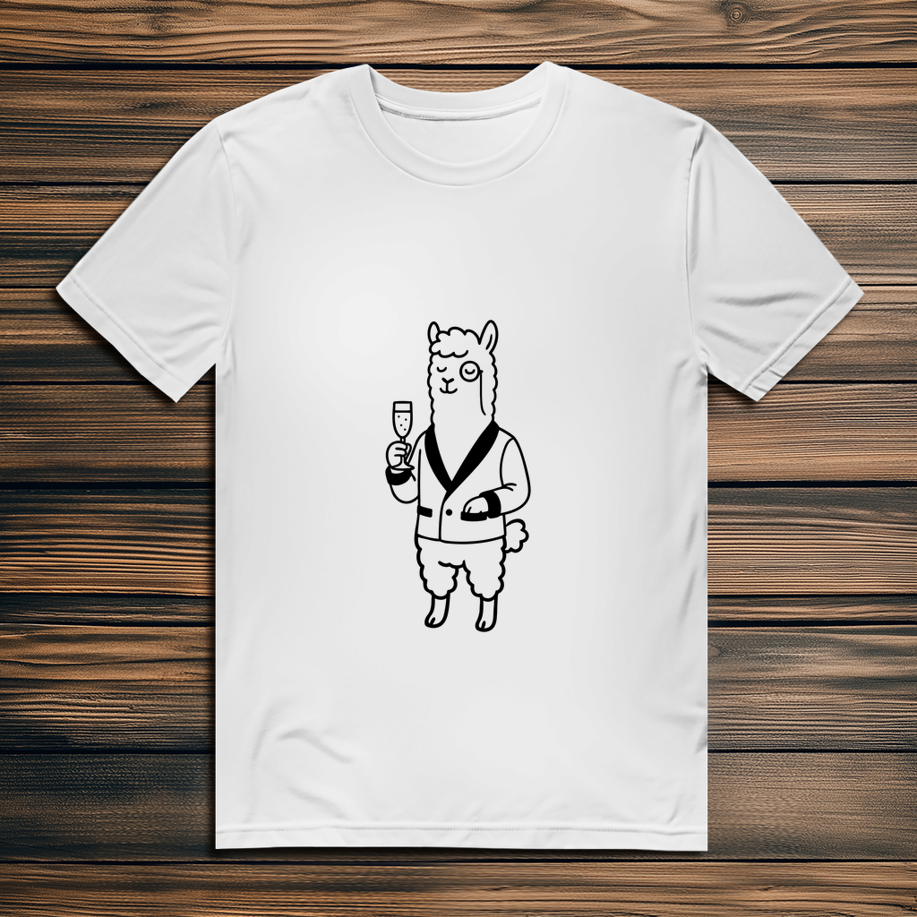 Dein Alpaka erscheint im feinen Zwirn und hebt das Glas in deinem Namen. Elegant wie ein Gala-Dinner, bequem wie ein Kater-Sonntag. Für Männer mit Stil, Humor und leichtem Pegel. Ideal für Junggesellenabschiede, Partynächte oder einfach, um beim Feiern overdressed zu sein – auf die witzige Art.